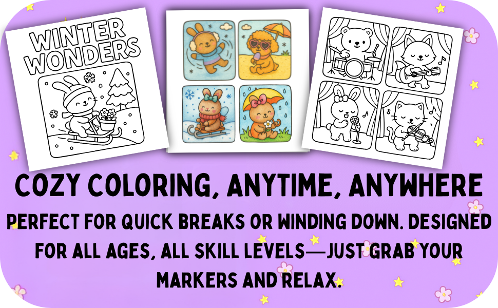 The Cozy Collection is a heartwarming coloring book filled with 250 hand-drawn mini illustrations designed to bring calm, joy, and cozy vibes to your day. Inside, you’ll find a charming variety of cute and whimsical scenes—from cuddly animals in tea shops to peaceful garden corners and snuggly reading nooks.